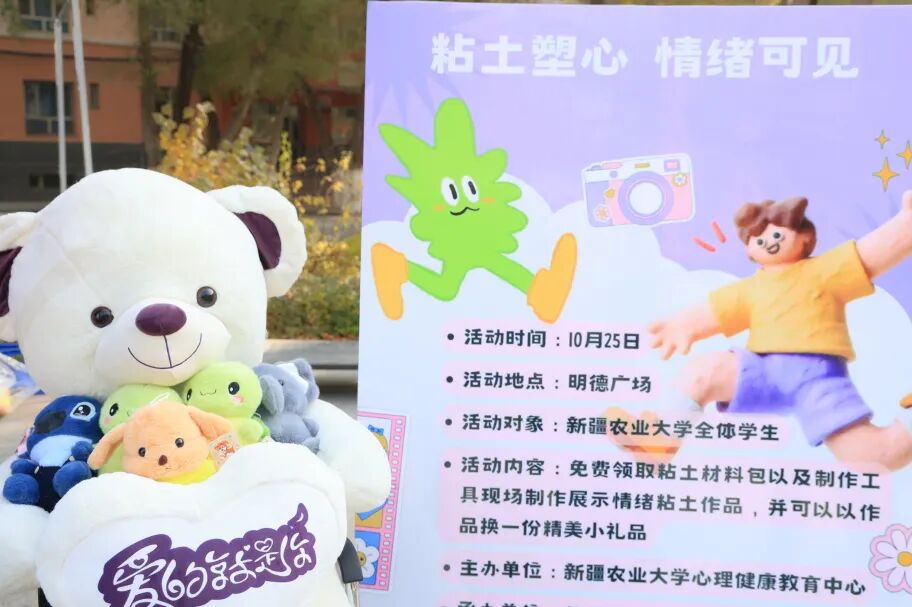 10月25日,由新疆农业大学心理健康教育中心主办、公共管理学院(法学院)团委·七色花心理协会承办的 “粘土塑心,情绪可见” 心理实践活动圆满举行,为同学们带来了一场沉浸式的心灵疗愈体验。